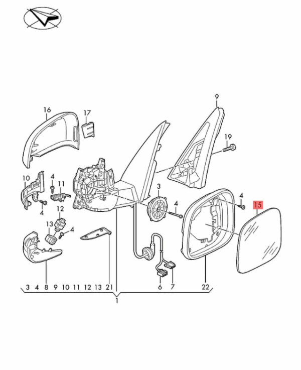 New Volkswagen Audi mirror glass 1T3857522C Genuine OEM